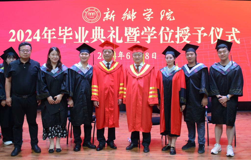 在熟悉的校歌旋律声中,新乡学院2024届毕业典礼暨学位授予仪式落下帷幕。典礼结束后,高等学历继续教育学院毕业生代表与党委书记孙功奇,校长王孝俊,继续教育学院(培训中心)书记崔红志,副院长畅丽萍合影留念。