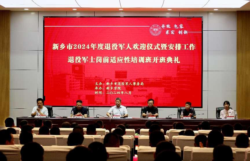 为深入学习宣传贯彻党的二十大精神及习近平总书记关于退役军人工作重要论述,更好地帮助退役军士适应从军队到地方工作环境的转变,提升转岗后职业能力水平,8月19日上午,新乡市2024年度安排工作退役军士岗前适应性培训班在我校正式开班。新乡市退役军人事务局副局长赵虎山、移交安置科科长宋玉功、自主择业军队转业干部服务中心主任郭强、移交安置科副科长杨怀玉、新乡学院继续教育学院党支部书记崔红志、副院长田贝贝出席开班典礼。