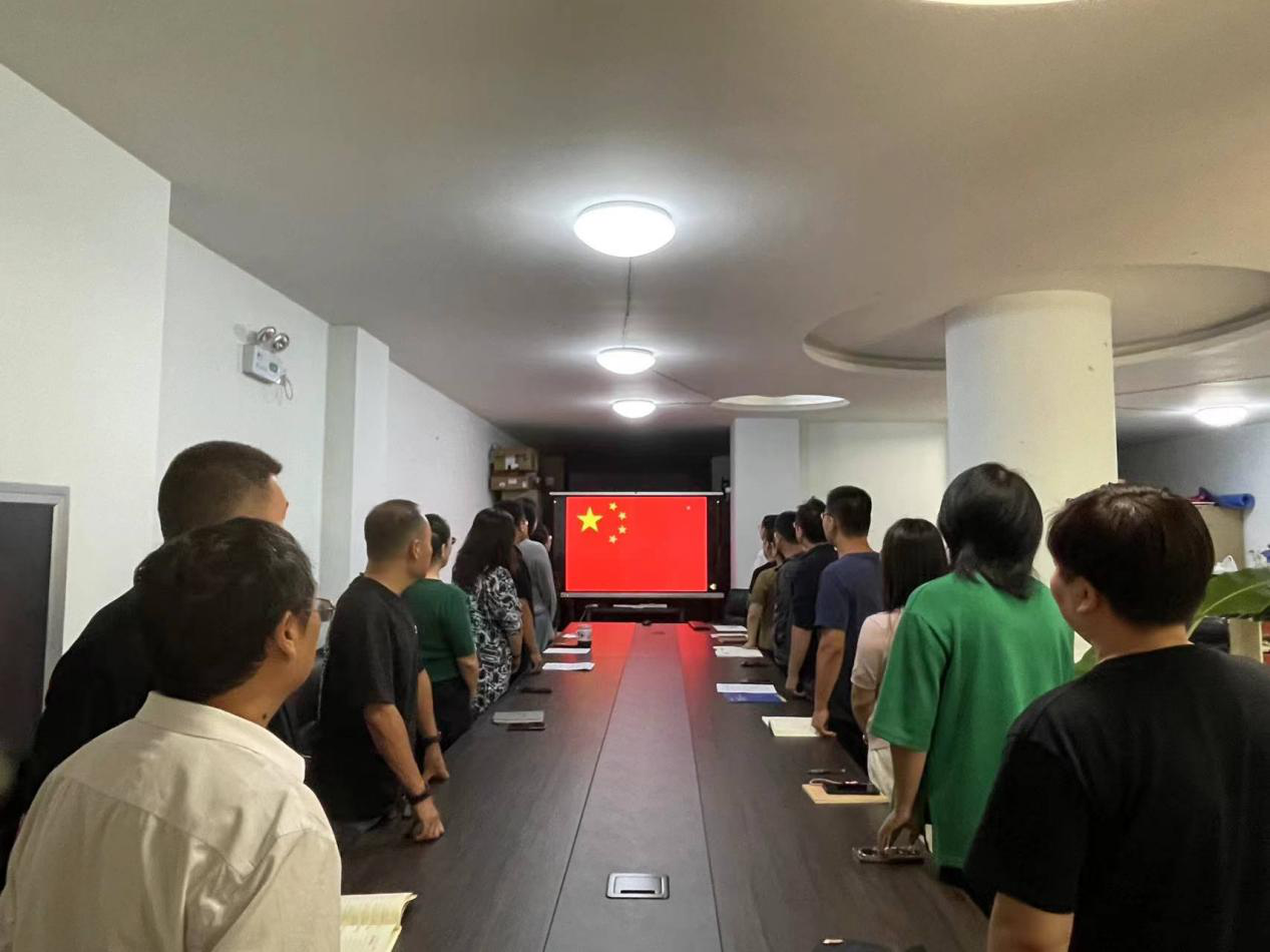 活动在雄壮的国歌声中拉开序幕。全体教职工面向鲜艳的五星红旗,满怀激情地奏唱国歌。在歌声中,表达对祖国的无限热爱与崇高敬意。随后,教师代表以诗词朗诵的方式向祖国献礼,大家用真挚的情感和激昂的声音,抒发对祖国深深的热爱。互动环节中,老师们一起参与到趣味猜字游戏中,在轻松、欢快的氛围中感受着浓浓的节日氛围。