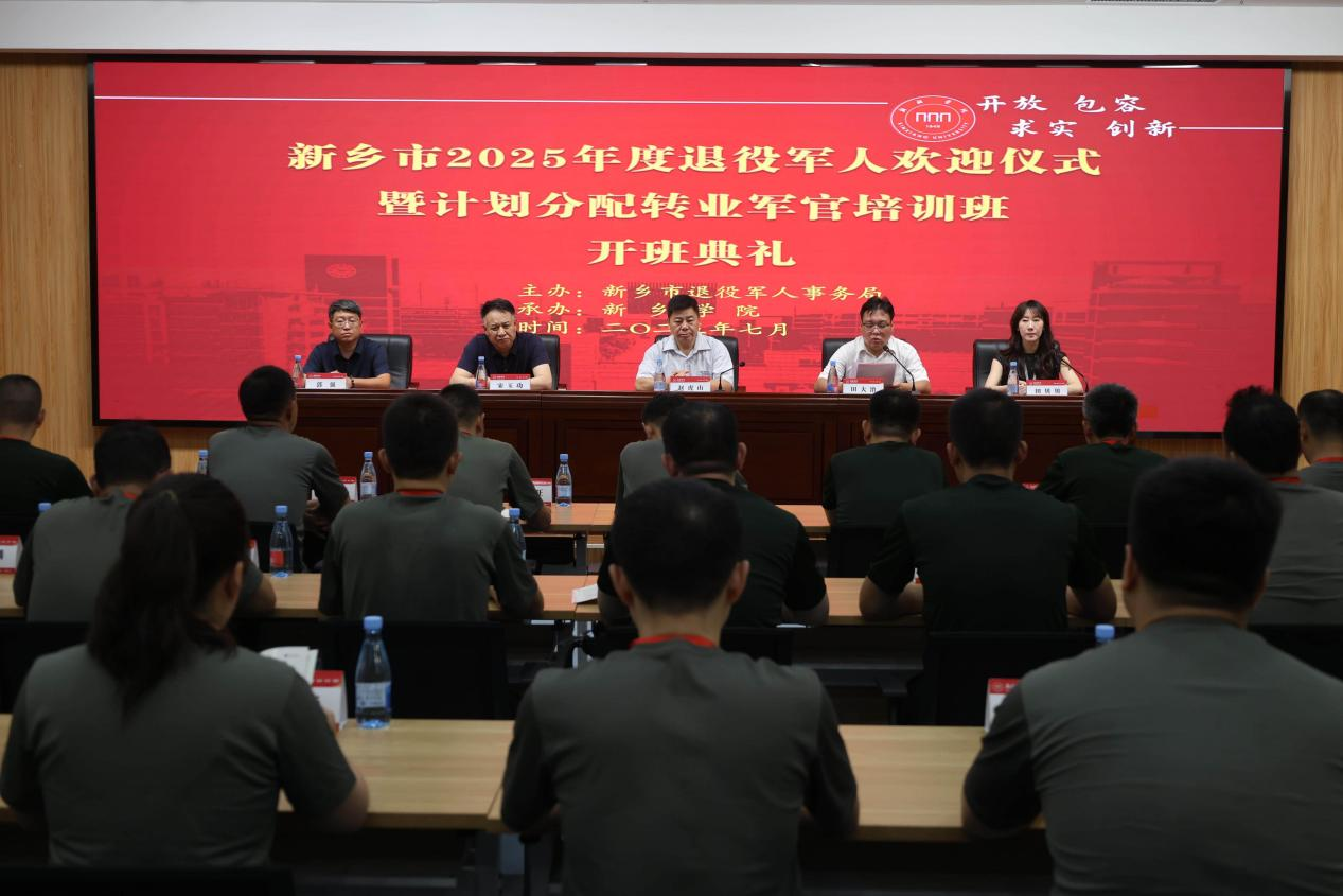 为深入学习贯彻党的二十大、二十届三中全会精神及习近平总书记关于退役军人工作重要论述,进一步推动退役军人工作高质量发展,7月15日,新乡市2025年度计划分配转业军官适应性与专业培训班在我校隆重开班。新乡市退役军人事务局副局长赵虎山、移交安置科科长宋玉功、自主择业军队转业干部服务中心主任郭强、新乡学院继续教育学院院长田大治、副院长田贝贝出席开班典礼。