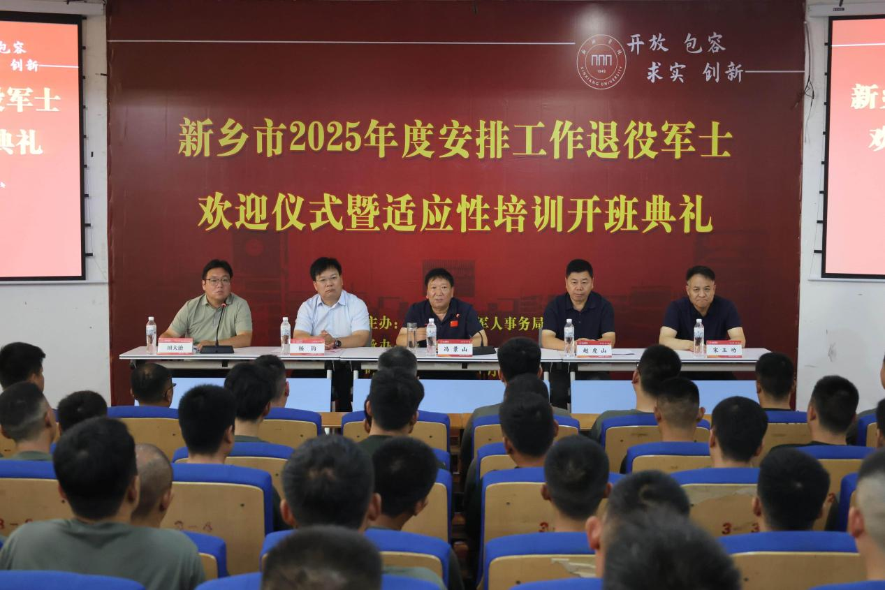 8月11日,新乡市2025年度安置工作退役军士欢迎仪式暨岗前适应性培训班开班典礼在我校举办。新乡市退役军人事务局党组书记、局长冯景山,副局长赵虎山,移交安置科科长宋玉功,新乡学院副校长杨钧、继续教育学院院长田大治出席开班典礼,110余名退役军士参加培训。